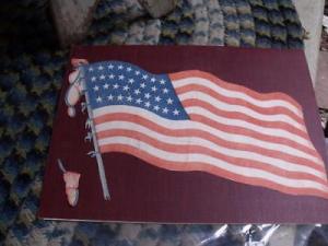Unusual Primitive Antique Americana Printed Paper U.S. Flag 12" by 8" 34 Stars