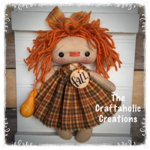* primitive RAGGEDY ann ANNIE dolL * Orange PLAID autumn FALL gourd