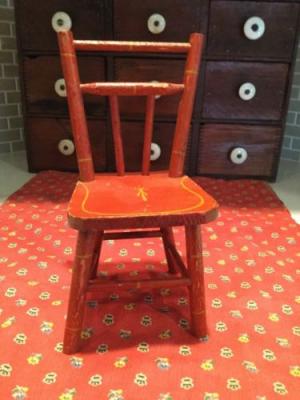 VINTAGE PRIMITIVE ANTIQUE PAINTED WOOD SMALL FOOT STOOL Hand Made - "NICE"