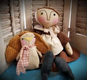 Primitive Pilgrim Doll w/ Turkey ~ Thanksgiving ~ Harvest ~