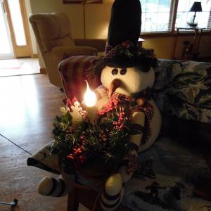 Primitive Snowman Doll, Handmade Shelf Sitting Snowman Doll Holding Gift,