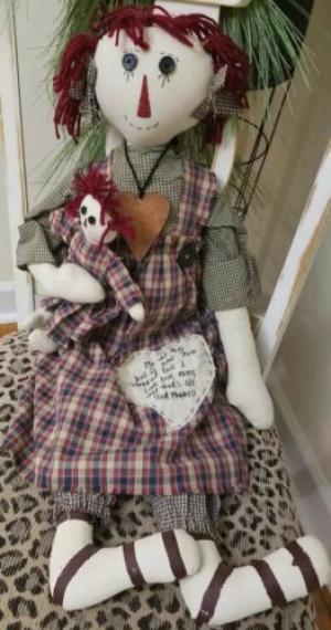 Primitive Raggedy Ann Doll w/ Heart Ornie ~ Annie ~