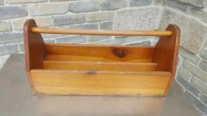 Vintage Rustic Primitive Wood Tool Caddy w/ Handle