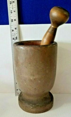 19 CENTURY ANTIQUE PRIMITIVE WOODEN MORTAR LARGE PESTLE SET Apothecary