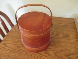 Vintage Antique Primitive Wooden Firkin Sugar Bucket w/handle and Lid