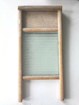 Vintage Ribbed Glass and Wood Wash Scrub Board Primitive 18"