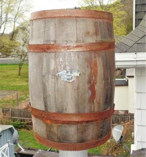 Vintage Primitive Wood Wooden Barrel Metal Bands 17" Tall 11"