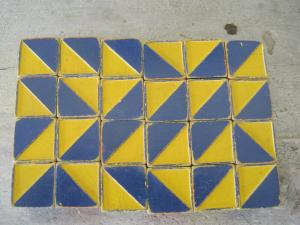 Twenty Four Old Vintage Primitive Orig Blue Red Mustard White Wood Toy Blocks