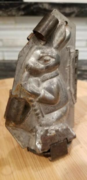 Antique Chocolate Mold Bunny W/ Trumpet Incredibly Detailed & Well Made 5" x 3"