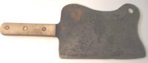 1910 BIG WEIRD SHAPE ANTIQUE KNIFE HAND FORGED BUTCHER SHOP MEAT CLEAVER CASE
