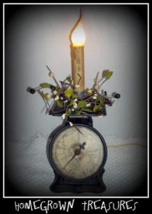 Primitive Vintage PoSTaL ScALe w/ BeRriEs LAMP! One of a kind!