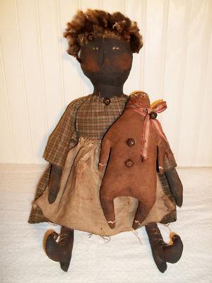 ♥ Primitive Grungy Black Girl Christmas Doll & Gingerbread Man ♥