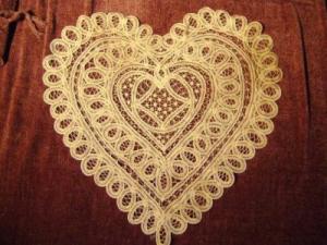 Valentine Doily ,Vintage Primitive White Large Valentine Heart Lace Doily