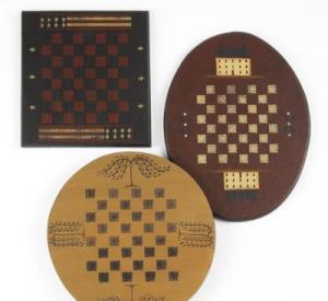 Primitive Country Wood Gameboards - set/3 - Checkerboards-Willow-House-Sheep-NEW
