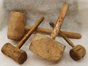 NICE FOUR PIECE LOT PRIMITIVE HAMMERS WOOD WORKERS BARN RAISING CARVING