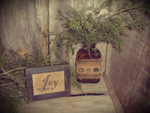 Primitive Decoration Old Buttons on Bottle Christmas Greenery Joy Frame~DN