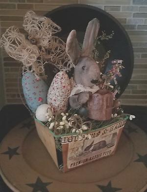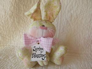 Primitive 'Spring Blessings' Bunny Rabbit Doll Made By a Patti's Ratties Pattern