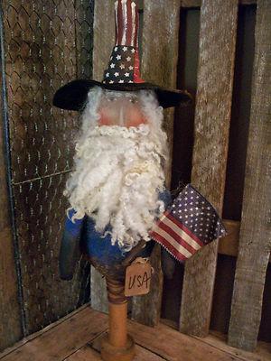 ★ Primitive Uncle Sam bobbin w/ flag doll ★