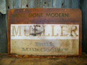 Old Vintage Mueller Milk Dairy Farm Advertising Sign Rustic Primitive Barn Decor