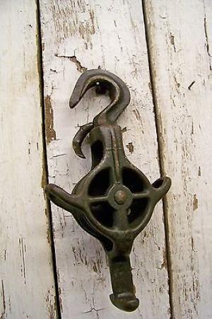 Vinrage BIG Old Wood Block Tackle Pulley Iron Wheel star