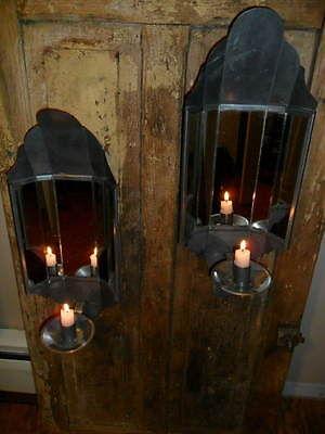 Primitive Candle Sconces- Set of 2, Tin w/ Candle Stub, Metal with Mirrors, Pair