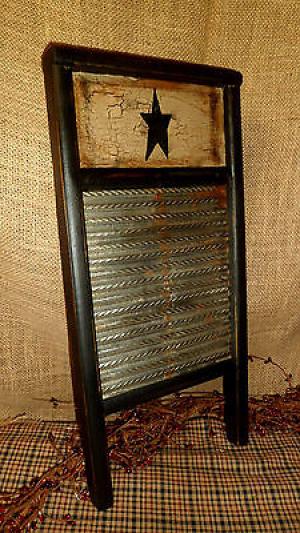 PRIMITIVE WOOD WASHBOARD 2SIDED DISTRESSED BLACK TAN CRACKLE STAR COUNTRY DECOR
