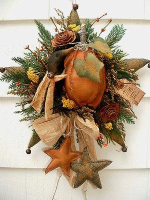 PrimiTive Fall Halloween Plaid PUMPKIN PATCH Scarecrow TaG Star Wreath decor