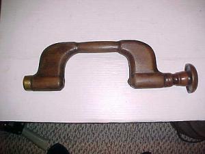 PRIMITIVE DRILL BRACE HAND CRAFTED WOOD BRASS 15 INCHES