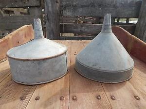 2 Old Vintage Galvanized Metal Fuel Funnels Gas Oil Industrial Lamp Shades 0716