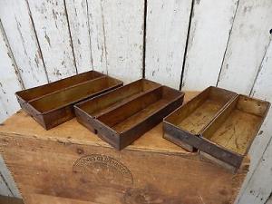 3 Vintage Metal Industrial Trays ~ Rustic Primitive Decor Shelf Crafts 1334