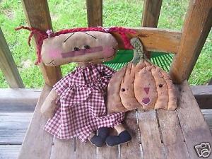 Primitive Halloween Pumpkin And Raggedy Ann Doll