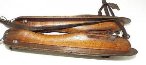 Antique Primitive Wooden & Iron Ice Skates Leather Straps Michigan