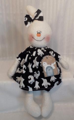 Handmade Primitive Raggedy HALLOWEEN GHOST Doll in GHOST dress