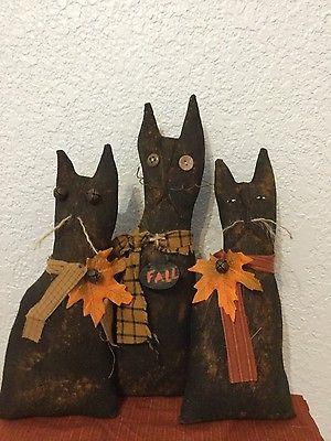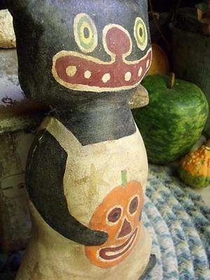 Primitive Vintage Hand Made Scary Cat Holding Pumpkin Fall or Halloween Decor