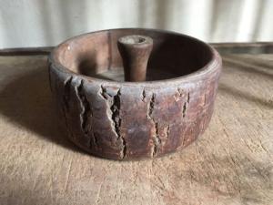 Old Primitive Wooden Treen Nut Cracking Bowl Great Wear & Patina AAFA
