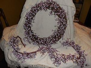 Primitive/Country Spring wreath w/ matching garland lavender Easter/Spring