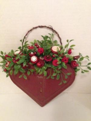 VTG Button Bouquet/VALENTINE❤Wall Pocket/Country Decor-Prim-Shabby Cottage Chic