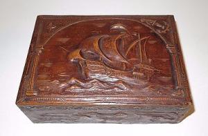 NICE ANTIQUE WOOD AND LEATHER HUMIDOR CIGAR BOX