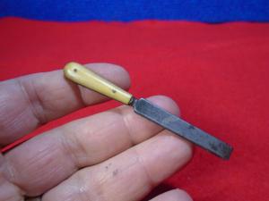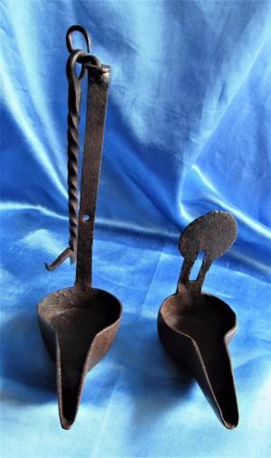 Antique Folk Art Iron Hogscraper Complete Painted silver, 6 1/4"