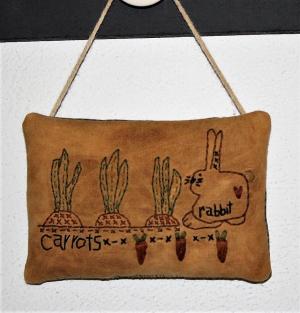 Primitive Stitchery Pillow/Ornament ~ Rabbit in Carrot Garden ~ Spring/Easter