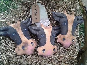 Primitive Folk Art~ Cow Bowl Fillers~ Set of 3 ~