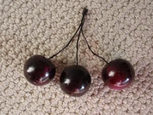 VINTAGE ITALY MARBLE ALABASTER CARVED DARK PURPLE STONE FRUIT CHERRIES WIRE STEM