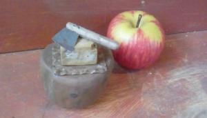 OLD AAFA CHILDS FOLK ART CHOPPING BLOCK WITH CLEAVER-BEAUTIFUL-INITIALS ON IT!