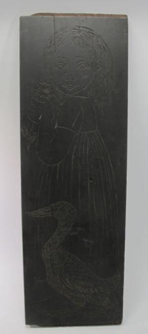 Vintage Folk Art Chisel in Wood Carving Barefoot Girl w/Goose & Flower NR yqz