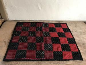 Early Antique Red & Black Calico Doll’s Quilt Mat Textile Fragment AAFA