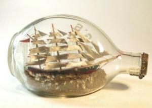 NICE ANTIQUE MODEL SHIP IN A WHISKEY BOTTLE