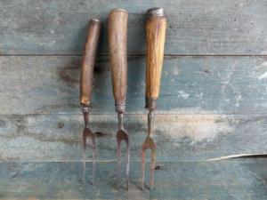 3 antique 18th 19th century primitive kitchen bone handle meat forks 9 inch