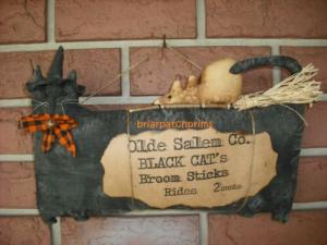 Primitive Halloween Cat Witch Doll w her Broom and Mouse Fall Decoration
