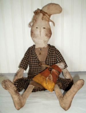 Primitive Folk-Art White Pumpkin Checkered Grungy Boy Doll