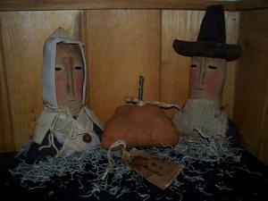 Primitive PILGRIMS & PUMPKIN Thanksgiving CUPBOARD TUCK AWAY Dolls